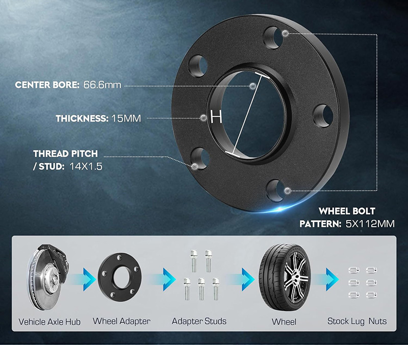 J&W Auto Part nabízí různé adaptéry podložek Mercedes z Číny, vhodné pro modely Mercedes s běžným vzorem šroubů 5x112 a středovou dírou 66,6 mm. S využitím dlouholetých zkušeností s výrobou upevňovacích prvků na kola poskytujeme standardní a zakázková řešení, která pomáhají zlepšit stabilitu a estetiku ovládání vozidla a zároveň zajišťují každodenní bezpečnost a spolehlivost.